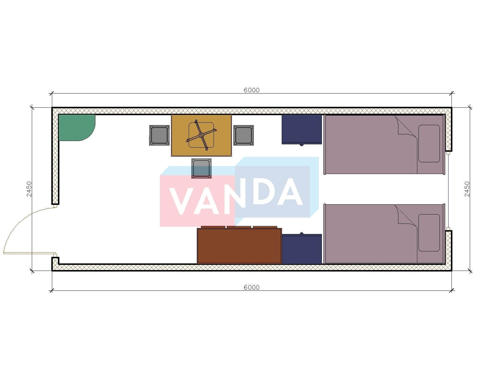 Металлическая бытовка распашонка 5,85 x 2,4 - Оргалит ДВП